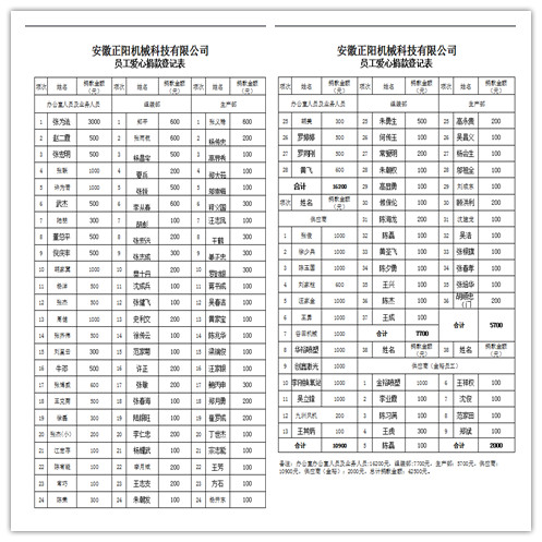 安徽正陽機械科技有限公司全體員工捐款現(xiàn)場