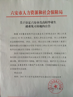 根據(jù)《安徽省高校畢業(yè)生就業(yè)見習(xí)管理辦法》(皖人社發(fā)〔2013〕43號(hào))文件規(guī)定,近日,市人社局公布了新認(rèn)定的2015年市直高校畢業(yè)生就業(yè)見習(xí)基地及其提供的160個(gè)就業(yè)見習(xí)崗位,計(jì)劃接收就業(yè)見習(xí)人員300名。畢業(yè)兩年內(nèi)的未就業(yè)高校畢業(yè)生,可以挑選適合自己的崗位,報(bào)名參加帶薪就業(yè)見習(xí)。安徽正陽機(jī)械科技有限公司獲此殊榮。